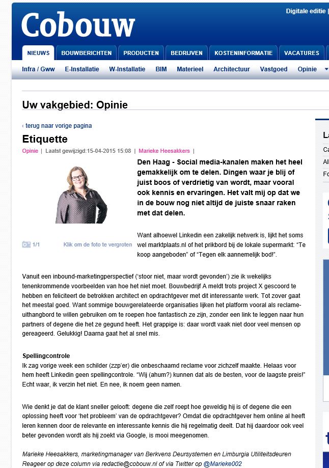 Column in Cobouw: Online Etiquette