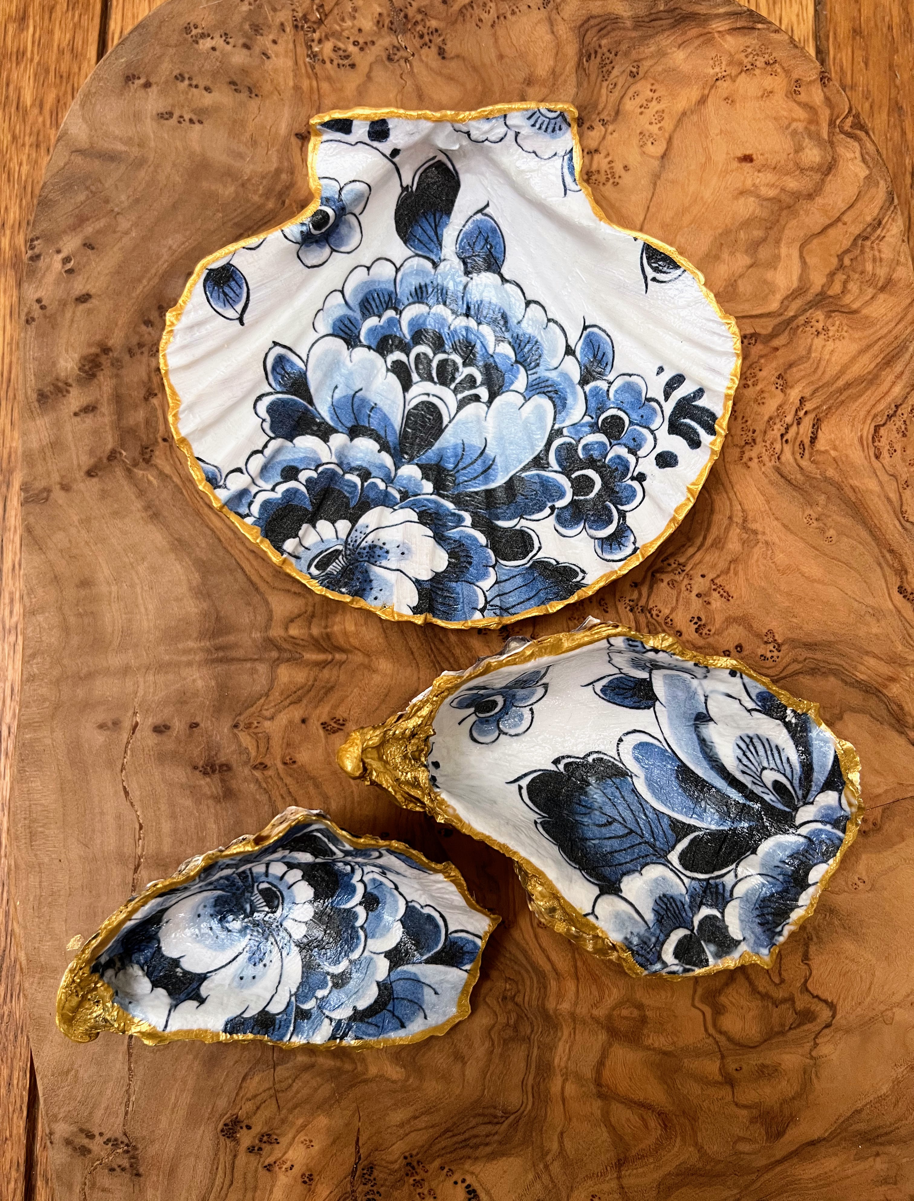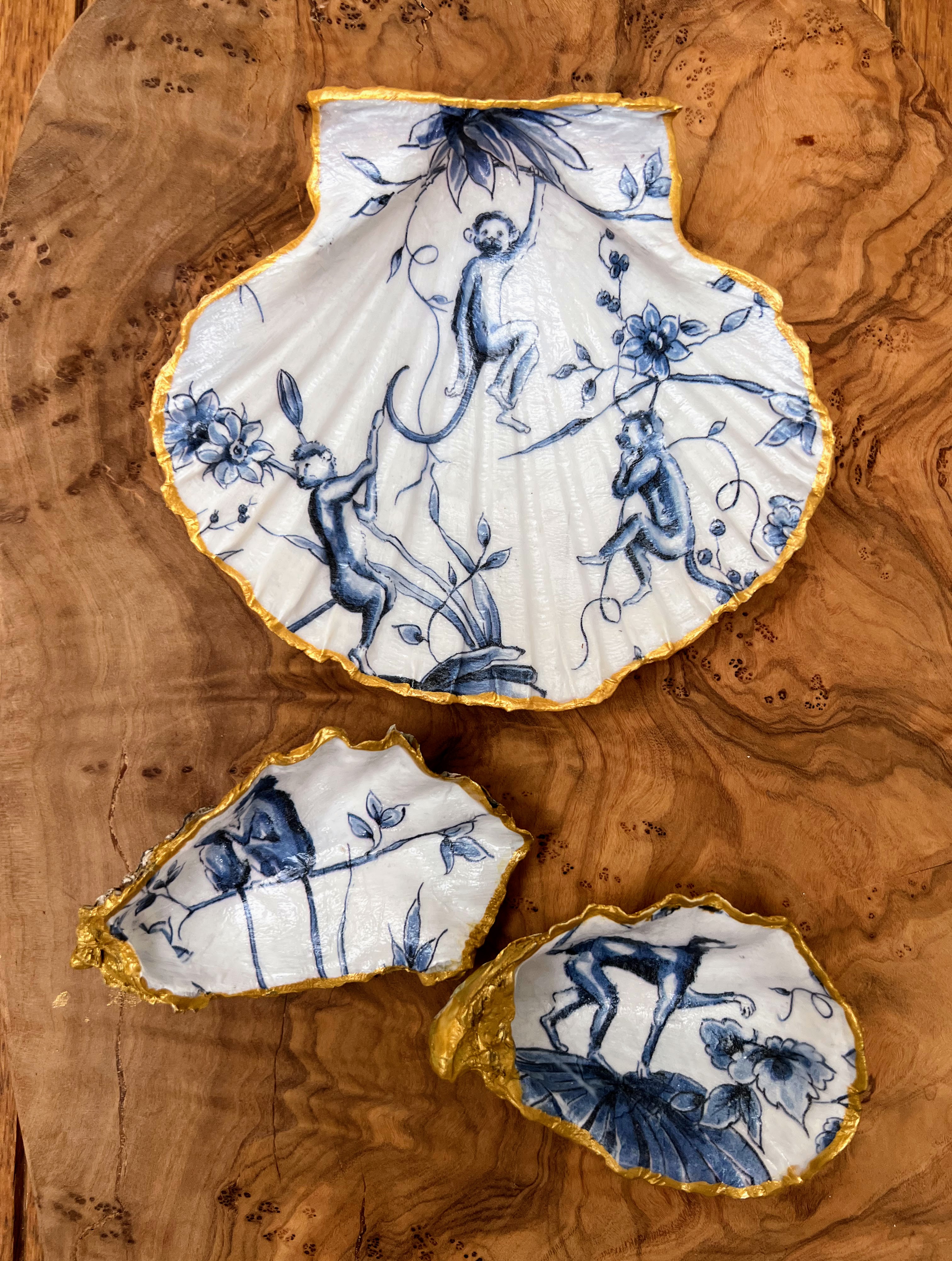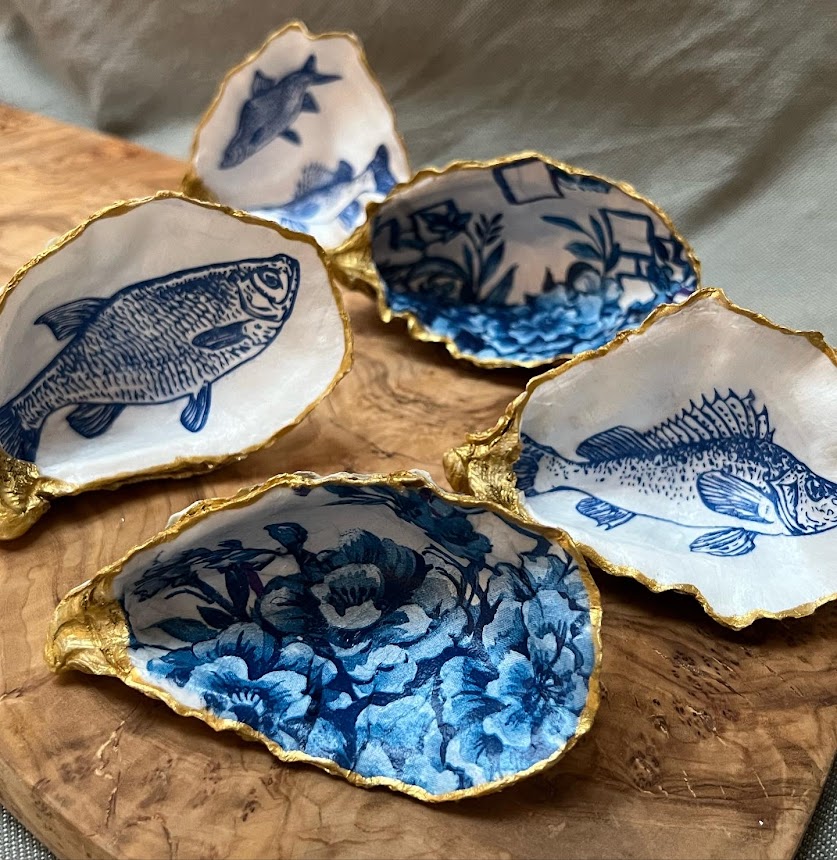 Alle combinaties zijn mogelijk en zie je een dessin op een oester dat je graag op een coquille wilt of andersom: laat het me weten, dan maak ik het. Levertijd is een paar werkdagen of in overleg.