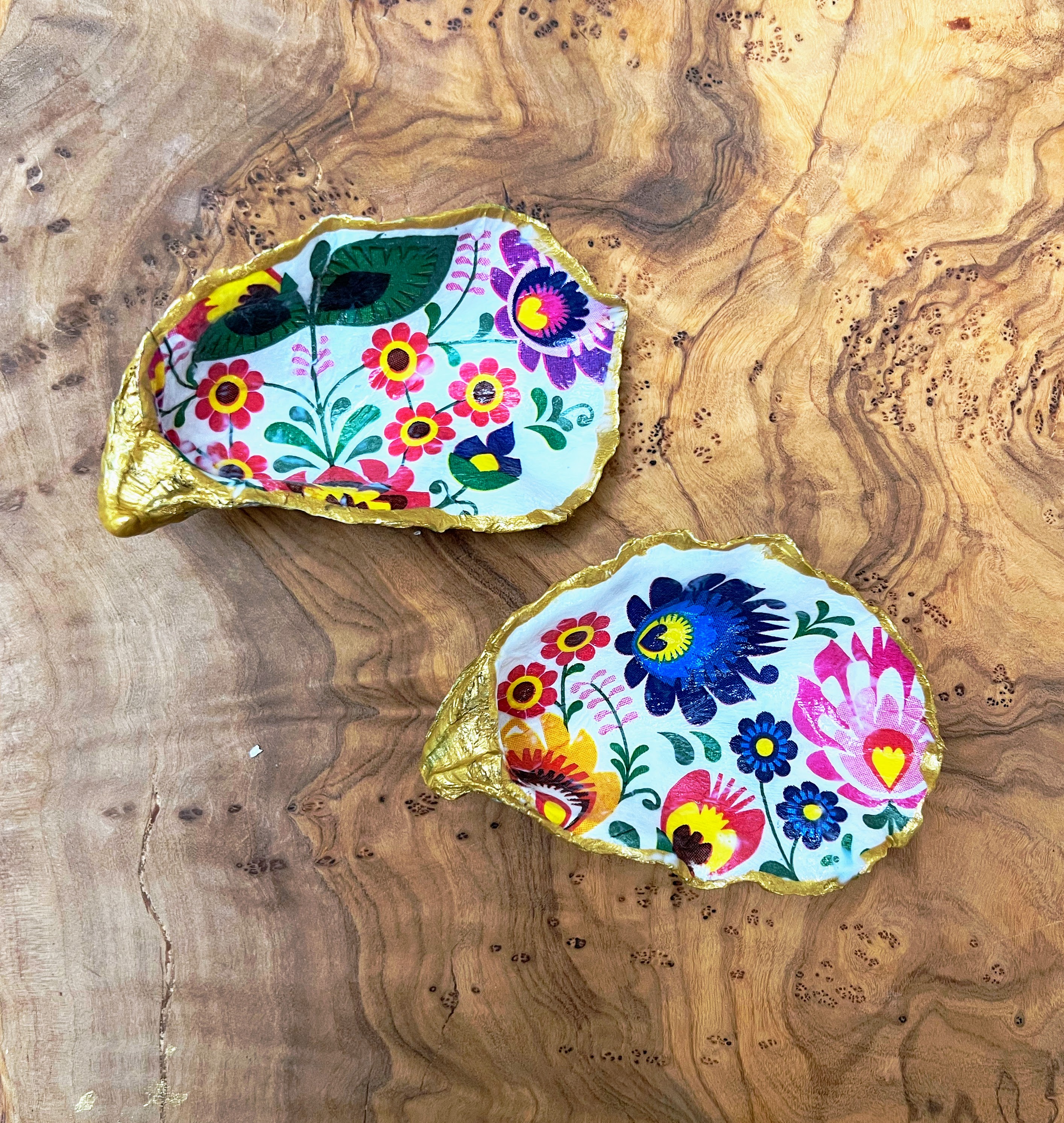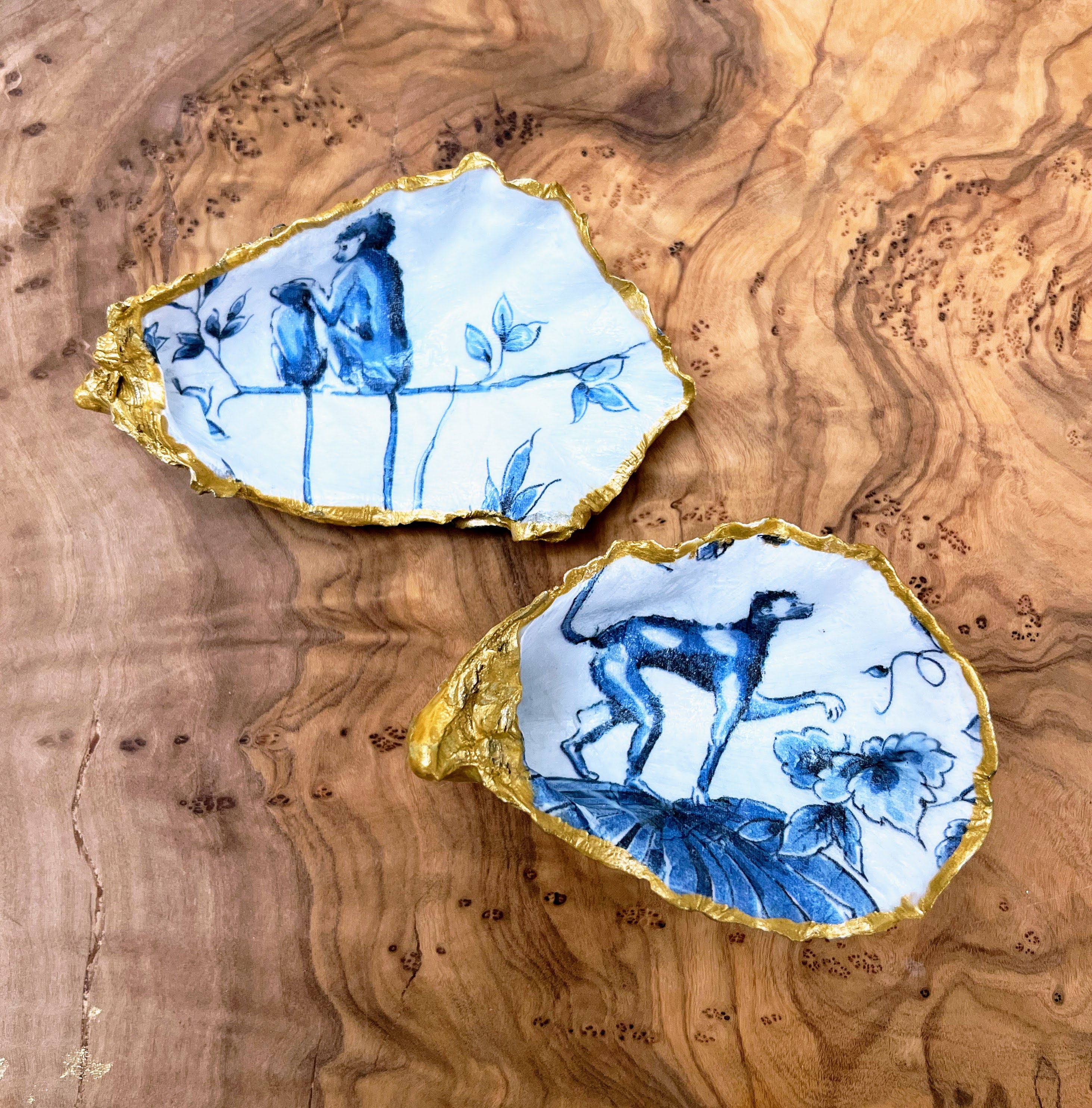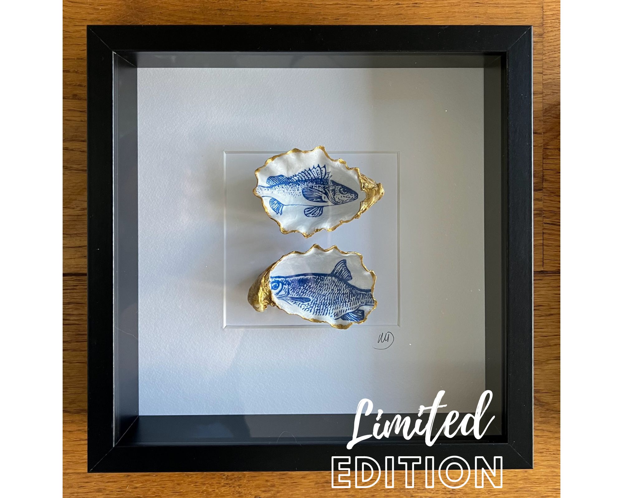Alle combinaties zijn mogelijk en zie je een dessin op een oester dat je graag op een coquille wilt of andersom: laat het me weten, dan maak ik het. Levertijd is een paar werkdagen of in overleg.