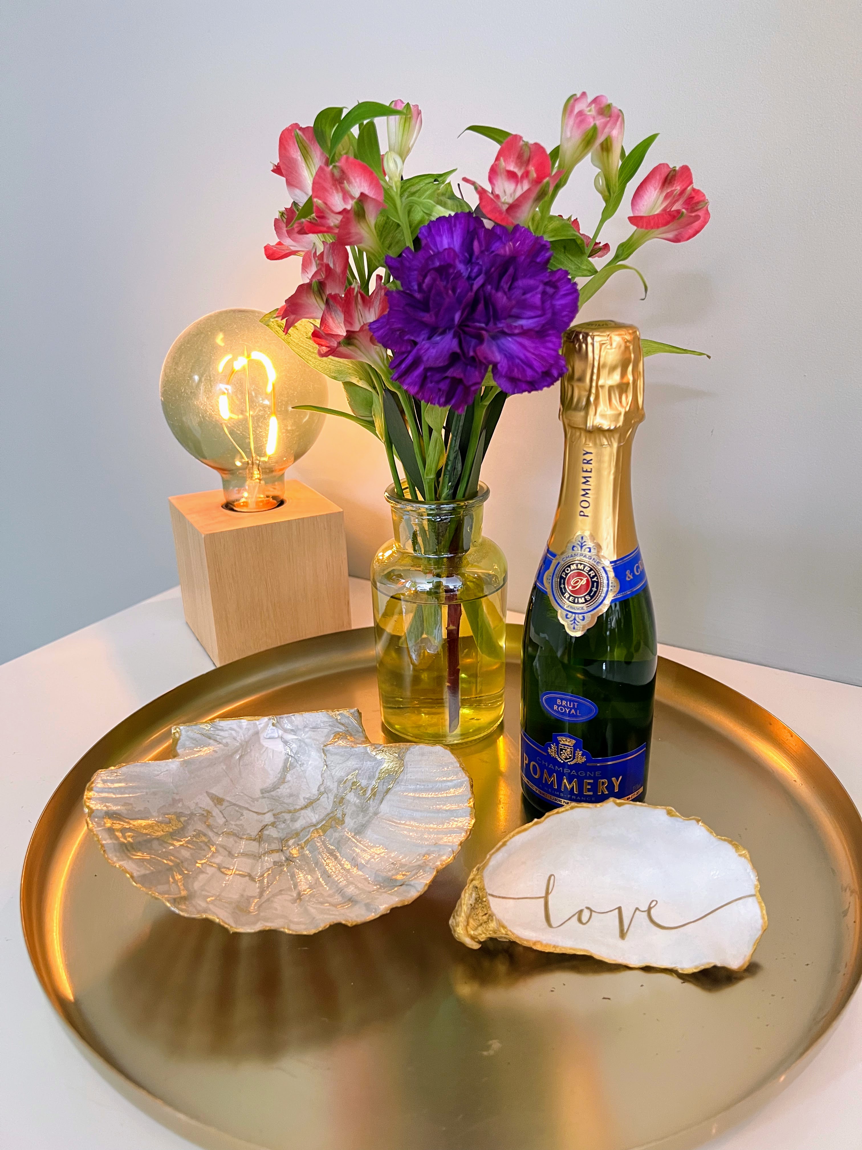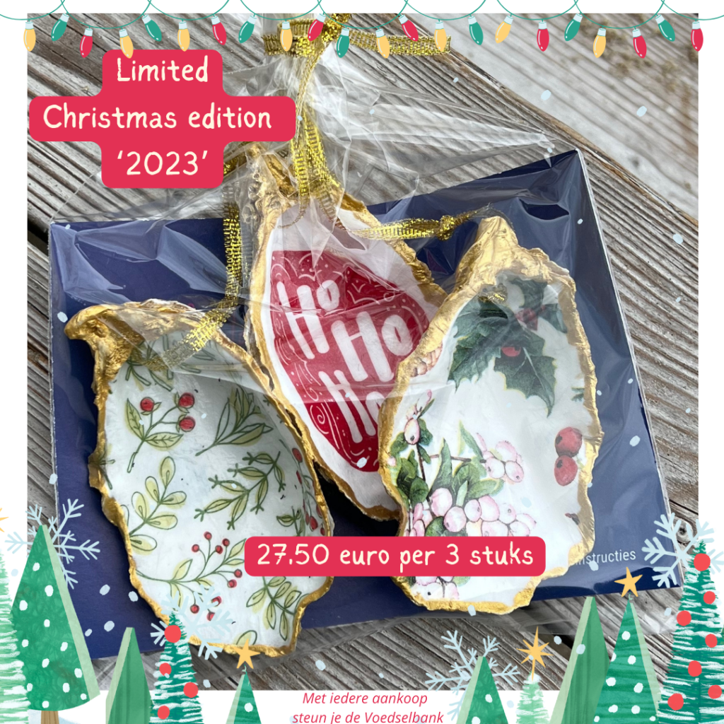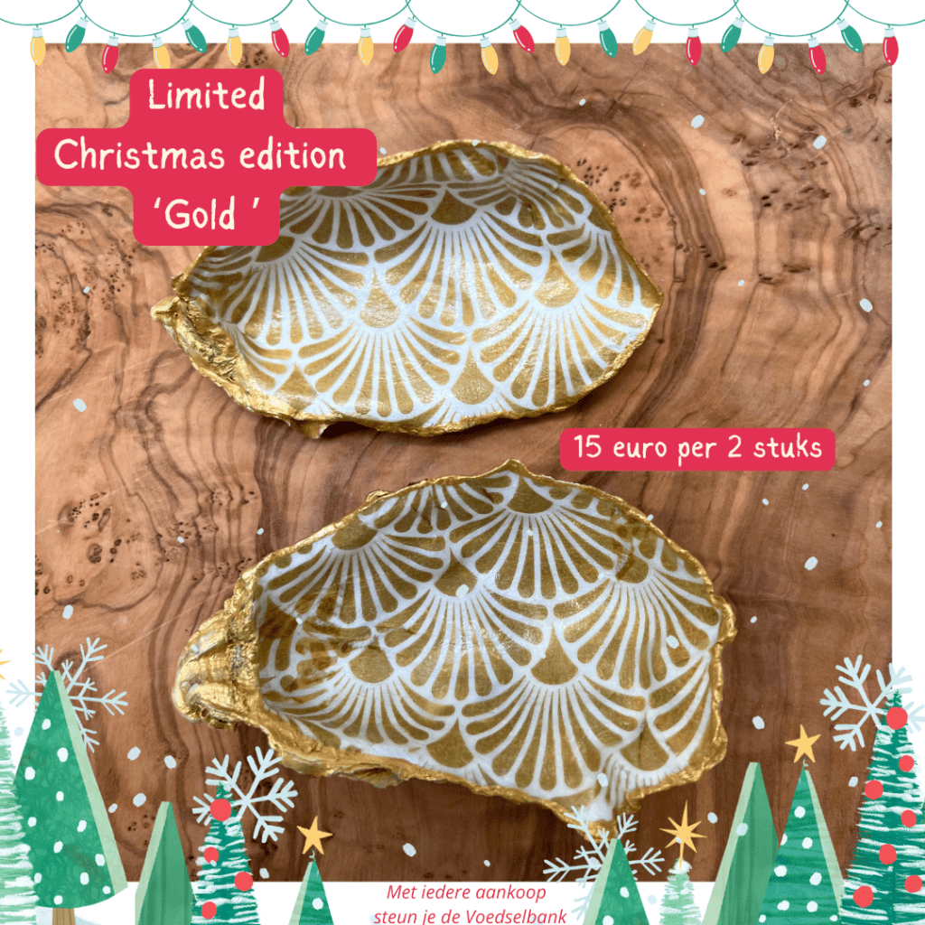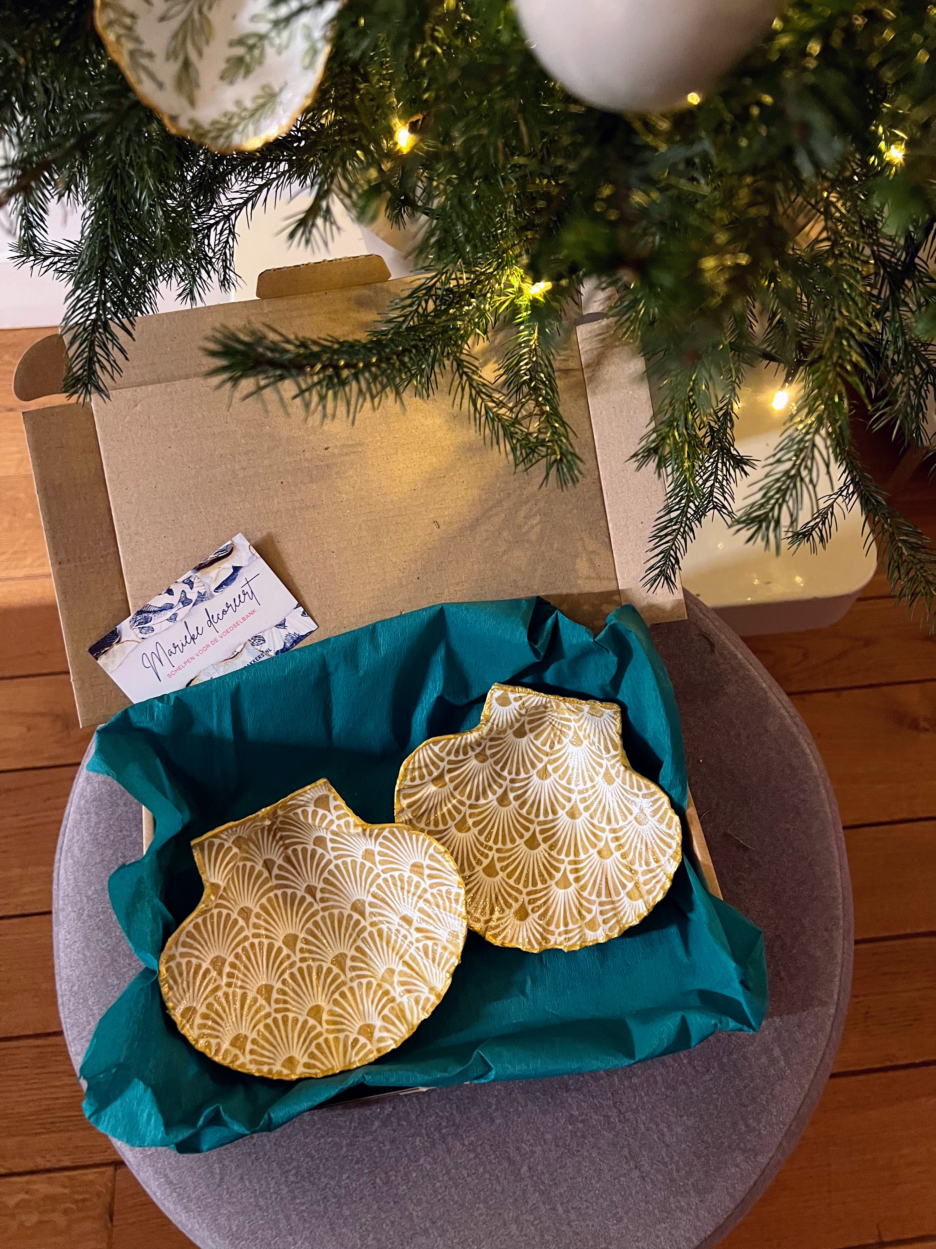 Kerstkadoosje set 2 oesters – 1 coquille: 25 euro / Kerstkadoosje set 2 coquilles: 20 euro
