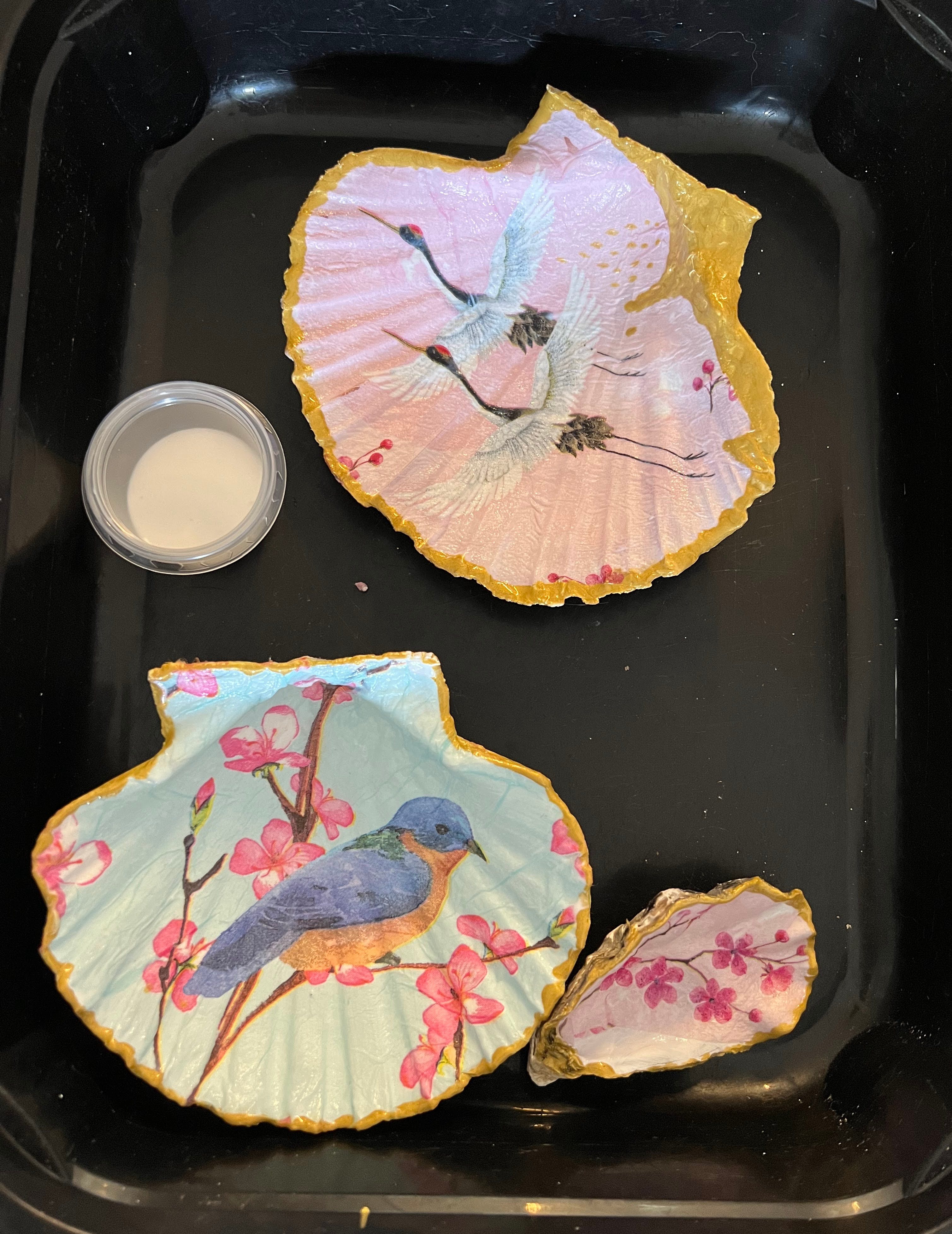 De schelpen zijn al voorbereid, zodat je meteen aan de slag kunt met het dessin van je keuze.